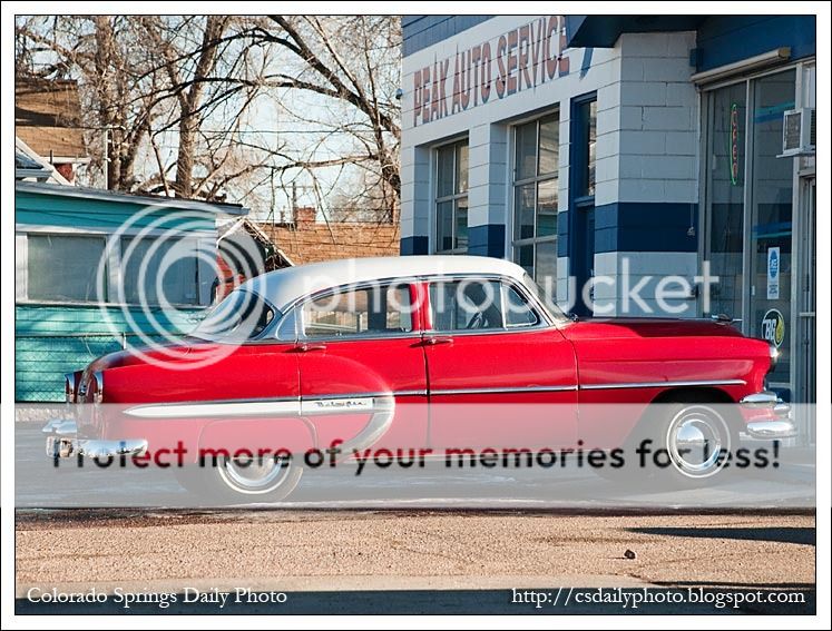 Yesterday I managed to get out of the house after two and-a-half days of being snowed in. But alas, it was only to go to my studio, put my head down, and work. Catching up was the only thing on my agenda, so I took no pictures for the blog. It's a good thing I have a few pictures hanging around for just such an emergency. I took this picture of a 1954 Chevrolet Bel-Air on January 29th at 18th and Colorado. (Apologies for the uninspired photography, I was stopped in traffic when I took it.) What a gorgeous car! Someone has certainly put some time, love and money into it.