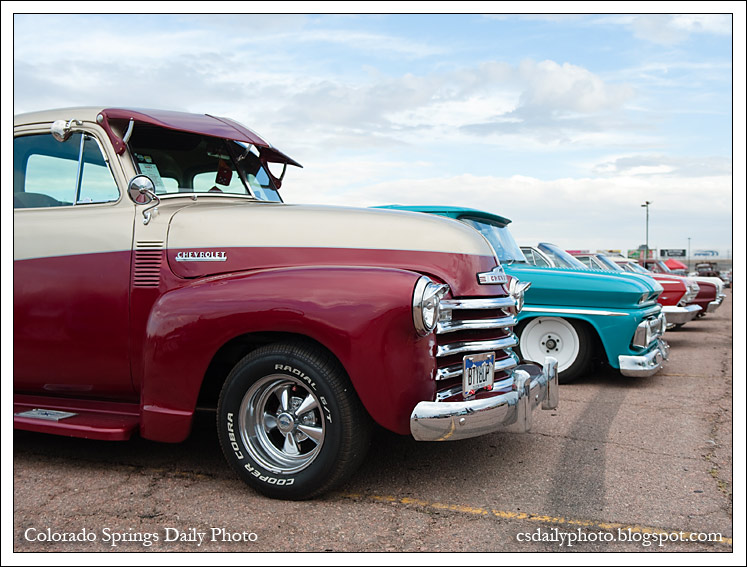 Sorry kids, I'm so tired that I can only post one image tonight to kick off my series on the Hot Rod Rock and Rumble. I basically shot the equivalent of two weddings in the last couple of days, only not in sensible shoes and with no help (normally when shooting weddings, the right footwear is key, and so is having an assistant!). Instead, I dressed in 1950s duds, and today that meant about eight hours on my feet in penny loafers, on concrete, schlepping heavy equipment all over God's half acre. So my feet hurt and I'm a little beat. Tomorrow's Sunday Style will definitely be someone or other from this weekend, and on Monday I'll dive into sharing more than just one picture at a time so you can see what a fun event this is.